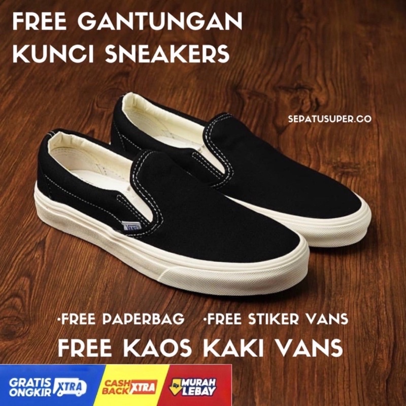 SEPATU VANS SLIP ON OG BLACK WHITE - sobwog